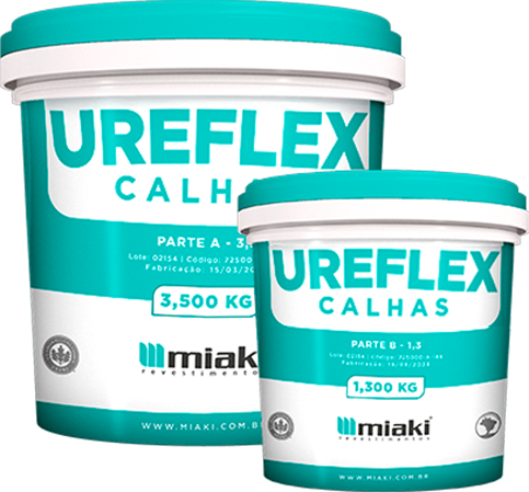 Ureflex Calhas é uma membrana impermeabilizante, poliuretano aromático, bicomponente, isento de solventes, à base de resina vegetal e aditivado com peneira molecular e agentes de superfície, com excelente elasticidade, estabilidade físico-química, aderência em metais e estruturas de fibra de vidro, além de alta resistência a empoçamento mesmo em superfícies com porosidade. Produto desenvolvido para utilização em substratos onde exista a necessidade de uma superfície lisa, sem juntas e totalmente impermeável. Com material flexível e alta resistência à ruptura e abrasão. Após sua aplicação, a superfície torna-se impermeável e, por não possuir juntas, garante maior segurança, higiene e assepsia. O Ureflex Calhas é indicado para áreas que exigem agilidade e rapidez na aplicação, proporcionando rápido retorno às operações. Em casos de ferrugem, deve-se realizar o tratamento da superfície com MK Rust antes da aplicação, garantindo a formação de um filme anticorrosivo e assegurando o ótimo desempenho do sistema.