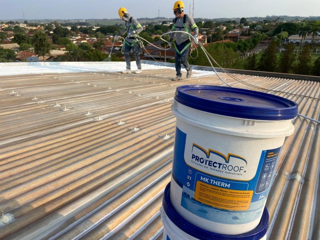 4 – Melhore a Proteção Térmica do Telhado: O calor excessivo pode causar dilatação e contração da estrutura, favorecendo o surgimento de fissuras e vazamentos. O MK Therm da ProtectRoof é um revestimento térmico que reflete até 96% da radiação solar, reduzindo variações de temperatura e prolongando a vida útil do telhado.